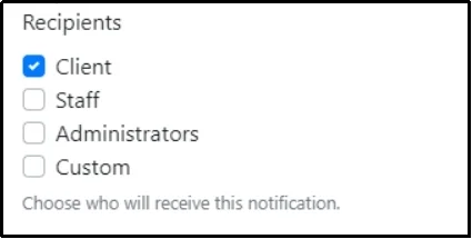 Tweak the settings as you want. Scroll down to the recipients section and check the boxes of who you want to receive the notification.