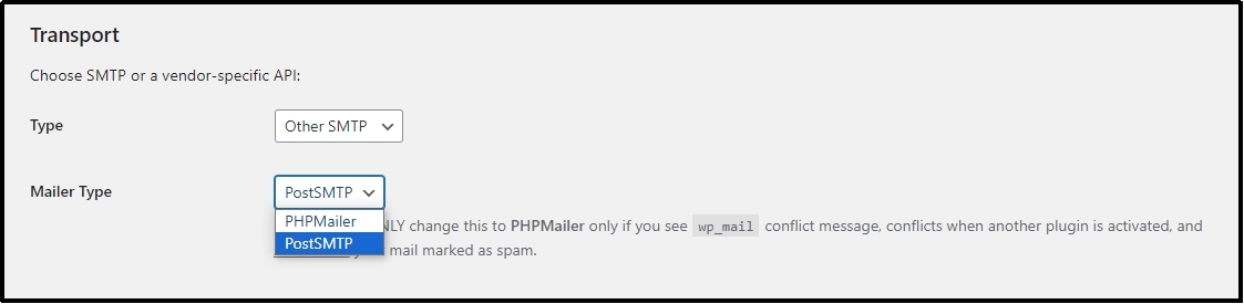 Usually, Post SMTP fetches the port and host settings from the API of the mailer you use, such as Gmail, Mandrill, Zoho, etc., but if you plan on using the “other mailer,” you will have to set it up manually.