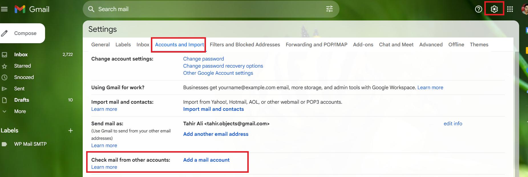 - Log in to Gmail and go to Settings > Accounts and Import