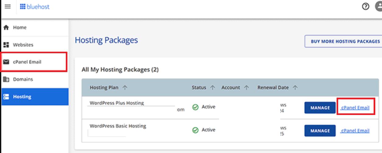 - Log in to your Bluehost account dashboard and go to the cPanel Email section.