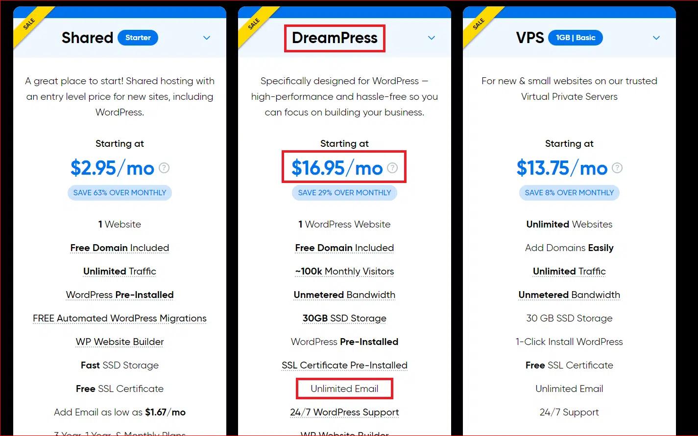Keep in mind that not all hosting plans include a free email domain. For instance, the Shared Starter package requires an additional payment for an email address. Therefore, we suggest you opt for the DreamPress plan, which costs $16.95 monthly.