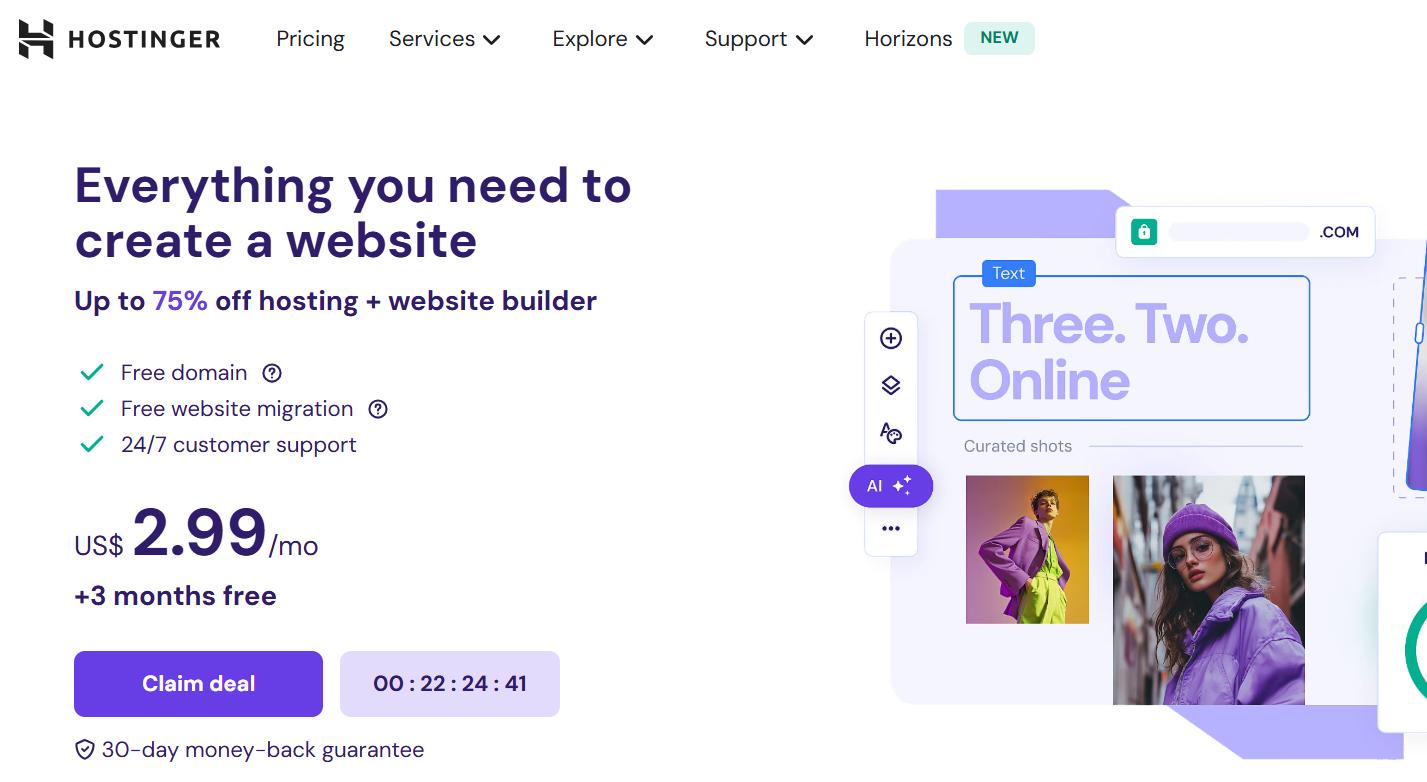 Hostinger provides an exclusive discount along with a free domain and email accounts when you choose one of its hosting plans. You can start for as low as $2.99 per month.