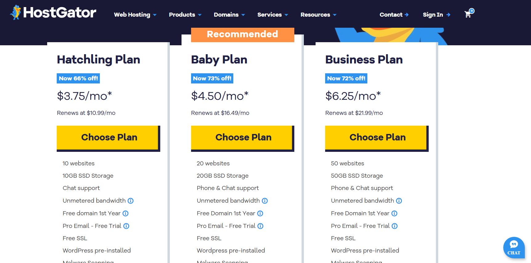 To get started, visit the HostGator website and click on the ‘Get Started’ button. You’ll be asked to select a hosting plan. The Hatchling and Baby plans are the most popular choices for beginners and small businesses.
