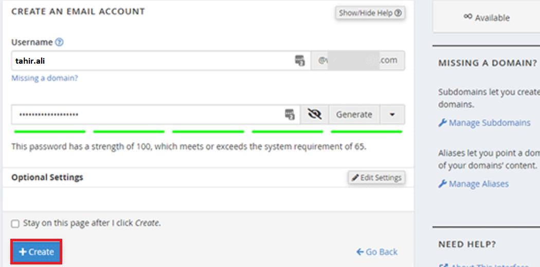 - Finally, click “Create”, and your email account will be ready to use.