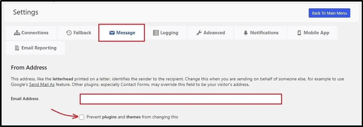 No! With Post SMTP, you can easily set up the SMTP mailer once, and check the “Prevent themes and plugins from changing this” box in the plugin’s settings to avoid inconsistency across your site.